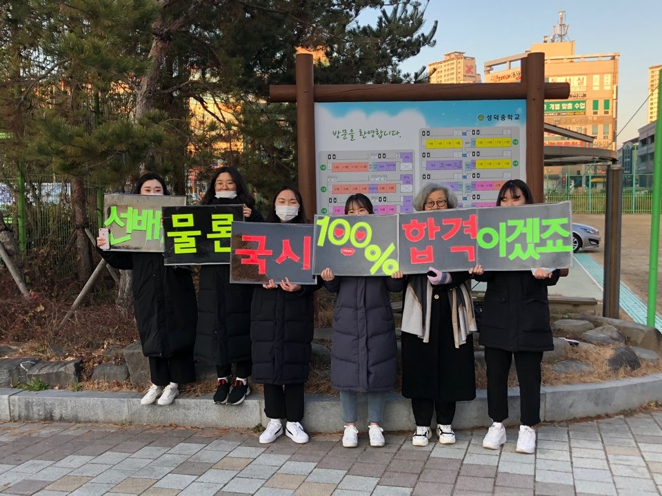 국가고시 당일 긴장하셨을 선배님들을 위해 후배들이 열심히 응원하였습니다.
