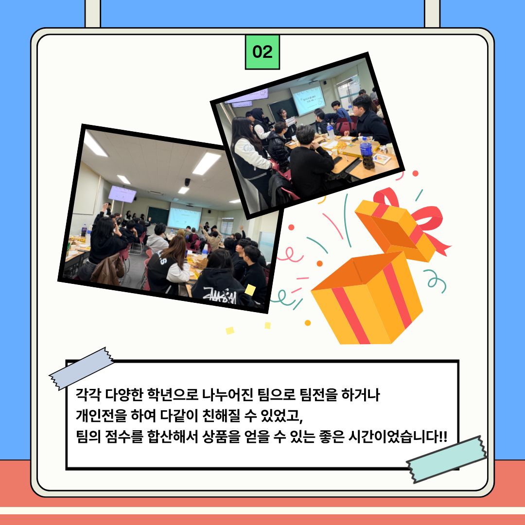 친목을 위해 대면식을 진행하였습니다. 이번 대면식을 통하여 1,2,3학년이 서로 친해지며 더욱 돈독해지는 계기가 되었습니다.