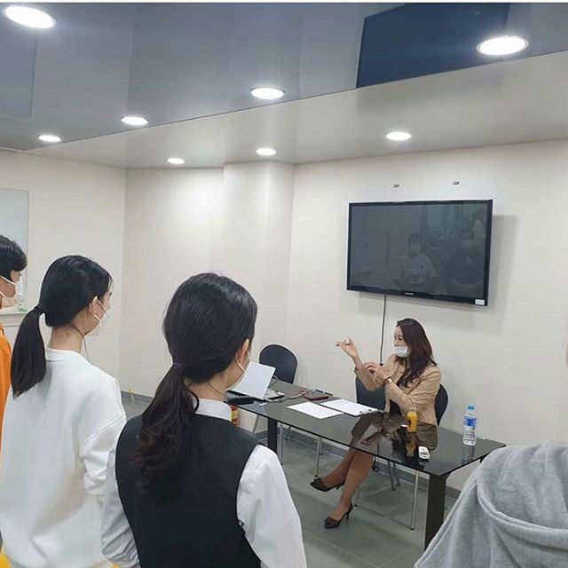 대구 SKY 승무원학원에 서영대학교 김미연 학과장님께서 방문했습니다.학생들 모의면접 때 아주 꼼꼼하게 피드백을 해주시는 모습입니다.