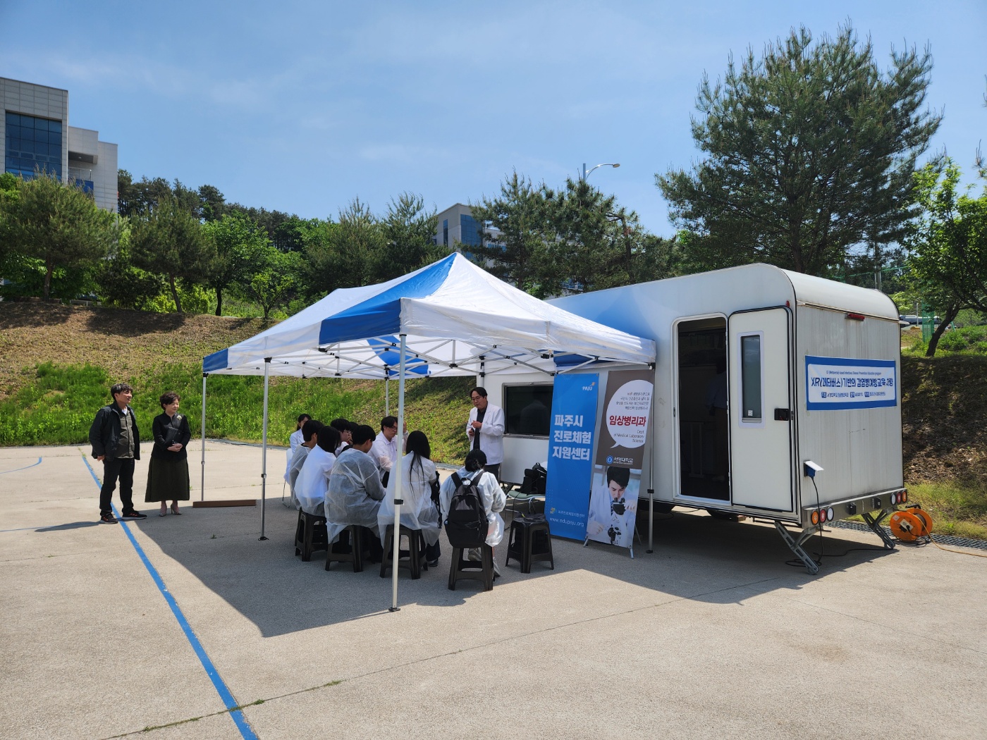 이지웅 임상병리학과장은 "임상병리학과는 감염병 전문가를 양성하는 교육기관입니다. 우리 학과는 이번 파주시 신사업(바이오-예방의학) 프로그램과 일치하는 XR(메타버스) 기반의 감염병 예방교육 체험을 국내 임상병리학과 최초이자, 유일하게 관내 초, 중, 고를 대상으로 진행하여, 학생들의 진로 결정에 길라잡이 역할을 하게 되어 매우 기쁩니다. 향후 다양한 XR(메타버스) 기반의 진로체험 프로그램 개발을 통해 지역사회 학생들의 진로 결정에 크게 기여할 수 있기를 기대한다."라고 말했다.