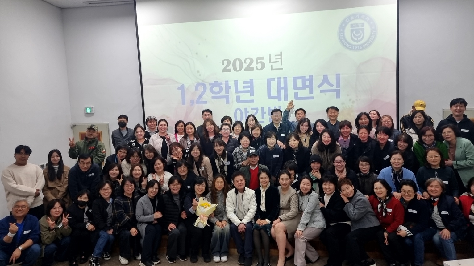 지난 3월 27일(목 ), 1학년 신입생분과 2학년 재학생분을 대상으로 대면식을 진행하였습니다! 이번 행사에는 약 80여 명의 학생들과 전임 교수님들께서 함께 자리해 주셨습니다.