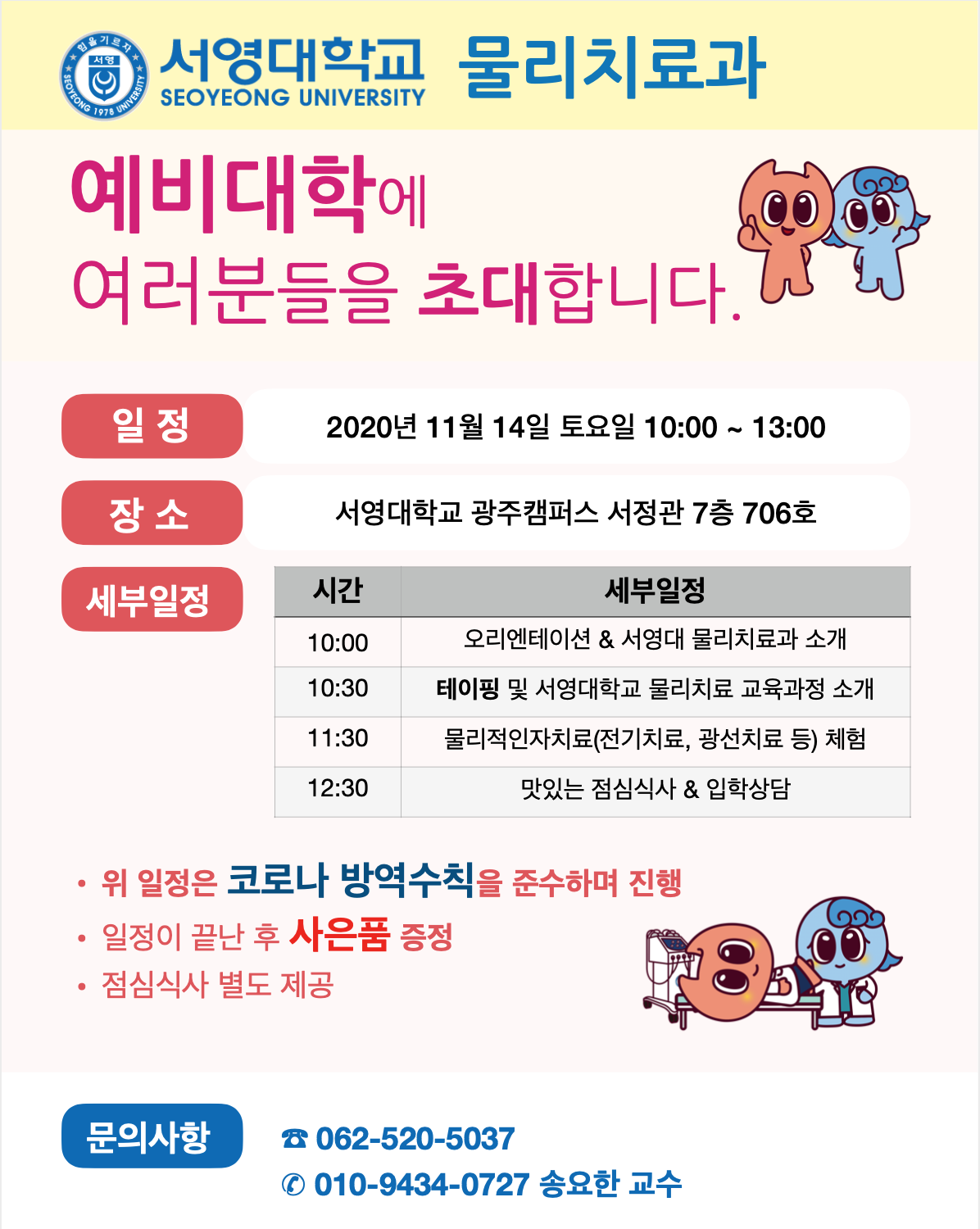 문의 : 062-520-5037 물리치료과 학과실