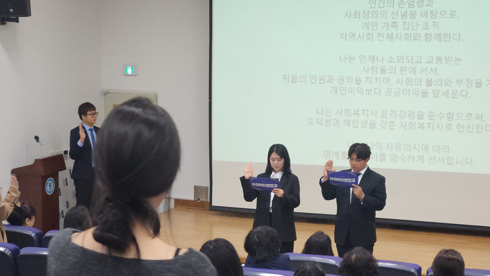 O. 우리대학(총장 김정수) 사회복지행정과(학과장 김효선)는 지난 11월 26일(수) 서영홀에서 ‘2025 사회복지행정인의 날’을 개최하였다. 행사에는 사회복지행정과 교수진과 재학생 50여 명이 참석했으며, 2학년 졸업예정자를 중심으로 사회복지사 선서식을 진행하고, 교수진에 대한 감사의 마음을 전하는 사은회를 통해 예비 사회복지사로서의 전문성과 윤리 의식을 다지는 시간이 되었다.